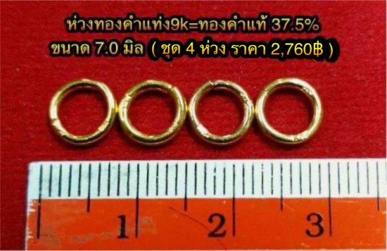 "ห่วงทองคำแท้ 9k = ทองคำแท้ 37.5%" (ตอกโค๊ดร้าน + โค๊ด 375) ขนาด 7.0 มิล จำนวน 4 ห่วง น.น.รวม 0.80 กรัม / สินค้าราคาพิเศษ (2,760฿) เคาะเดียวพร้อมจัดส่ง ems ให้ครับ.