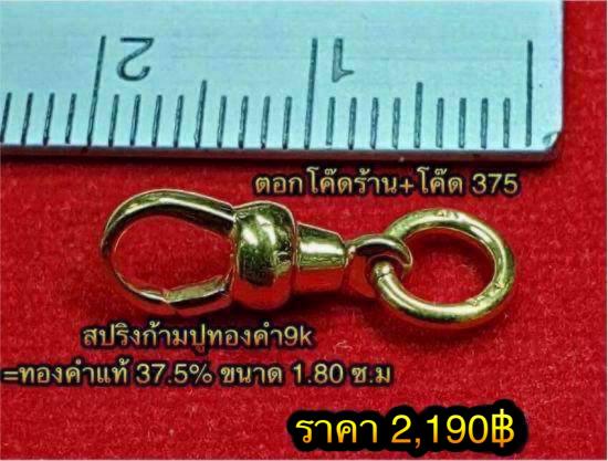 **สปริงก้ามปูทองคำแท้ขัดเงา** แบบไม่หมุน (ขนาดกลางNo.2) ขนาด1.80 ซ.ม. น.น.0.74 กรัม (ทอง9K=ทองคำแท้37.5%=ตอกโค๊ด375) สปริงแน่นๆใช้งานแข็งแรงทนทาน เปลี่ยนพระที่ท่านแขวนสะดวกสบายครับ ราคา@ 2,190.- ไม่ขายจัดมาให้ท่านสมาชิก"วัดใจเคาะเดียวแดง" พร้อมจัดส่ง EMS ให้ครับ.