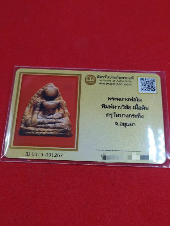 พระหลวงพ่อโต พิมพ์มารวิชัย เนื้อดิน กรุวัดบางกระทิง จ.อยุธยา พร้อมบัตรรับรอง