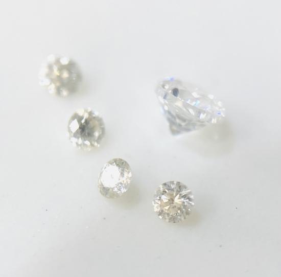 เพชรแท้ธรรมชาติ แกะจากตัวเรือนสินหลุดจำนำ จำนวน 5 เม็ด (9 ตัง 1 เม็ด+ครึ่งตัง 4 เม็ด) น้ำหนักรวม 0.11 กะรัต น้ำประมาณ 96-97VS |