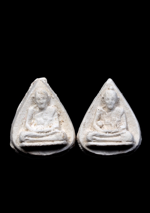 พระเนื้อผงพุทธคุณ หลวงปู่ดู่ วัดสะแก อยุธยา ถอดพิมพ์เหรียญหยดน้ำปี 32 2 องค์ ครับ |
