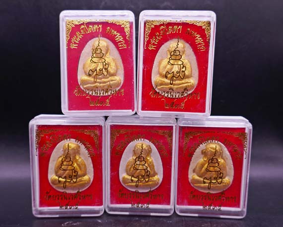!!!!วัดใจ 9 บาท!!!! 5 องค์ พระผงปิดตา มหาลาภ ญสส วัดบวรนิเวศวิหาร พ.ศ.2535 เนื้อผงเกสร(ขาว) ปัดทอง กล่องเดิม |