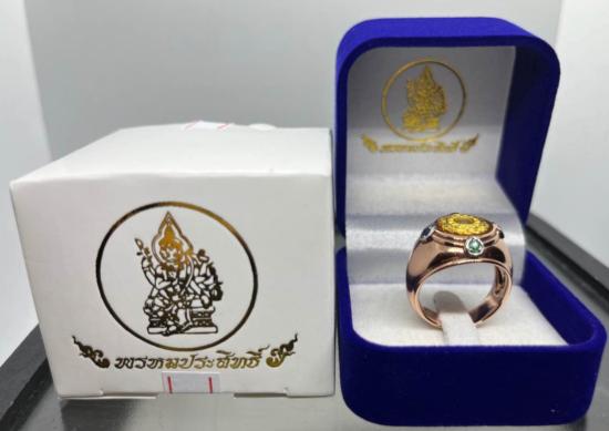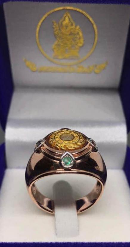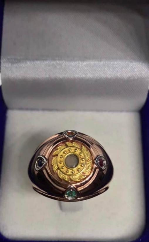 พรหมประสิทธิ์ แหวนมหาจักร มวลสารร้อยล้าน เนื้อสัตตะชุบพิงค์โกล์ จักรมวลสาร ฝังอัญมณี ทับทิม,ไพลิน,บุษราคัม,มรกต ของเสี่ย อั๋น โอกิ ราคาจอง3999 จักรหมุนได้ มวลสารร้อยล้านบาท หมายเลข 7949เส้นผ่าศูนย์กลางวงในขนาด 2.2 เซนติเมตร ไซค์ประมาณ62 กล่องเดิม