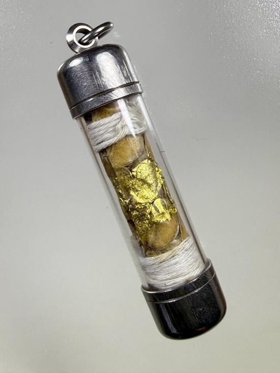 ลงหัวใจมหาเสน่ห์เฉพาะบท (หรือบทเฉพาะ) ตะกรุดหนังงูเหลือม เครื่องรางแห่งมหาเสน่ห์ เมตตาค้าขาย โชคลาภ ใครมีไว้บูชาจะเป็นมหาเสน่ห์ดีนักแล ทำมาหากินคล่องไม่ฝืดเคือง ไม่อดไม่อยาก ขนาดความยาว 2 นิ้ว