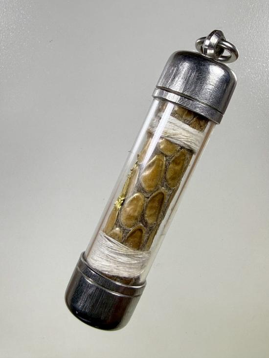 ตะกรุดหนังงูเหลือมสุดยอดของดีที่ขึ้นชื่อมหาเสน่ห์ นับเป็นของดีเจ้าตำรับที่เด่นเป็นเอกในเรื่องของเมตตามหาเสน่ห์ เมตตามหานิยมเป็น ตรง ตรง เต็ม เต็ม ตะกรุดหนังงูเหลือมนี้เป็นมหาสูตรตามตำรับวิชา "กัมปงชนัว"