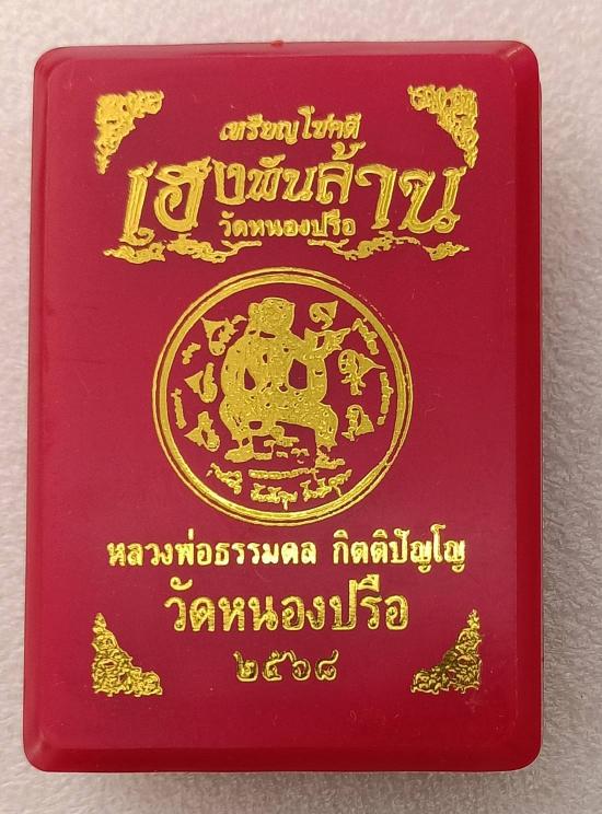 เหรียญโชคดี หลังหนุมาน เนื้อทองแดงประกบทองทิพย์ (ขนาดเหรียญ๕บาท) รุ่นเฮงพันล้าน ปี๖๘ วัดหนองปรือ ปักธงชัย มีพระอาจารย์ต้อม,สุริยันต์,เวิน,ธรรมดล ปลุกเสก โค๊ต-เลข สวยชัด รับประกันครับ