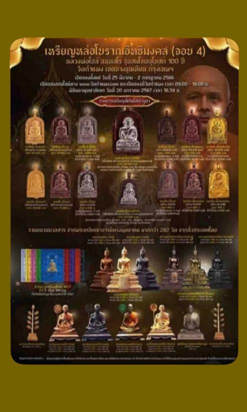 ~ รุ่นวาระเฉลิมพระอุโบสถ์ วัดกำแพงมีอายุครบ100ปี พิธีมหาพุทธา ภิเษก เมื่อ20 มค. 67 เวลา16.39น. ห่างจากรุ่น3นานถึง 12ปี. ราคาจอง3500
