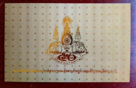 เคาะเดียวแดง.....แบงค์ 500 บาท ฉลองสิริราชสมบัติ ครบ 50 ปี พ.ศ. 2539 พร้อมกล่องซองผ้าไหมหนังสือครบชุดมูลนิธิส่งเสริมศิลปาชีพ