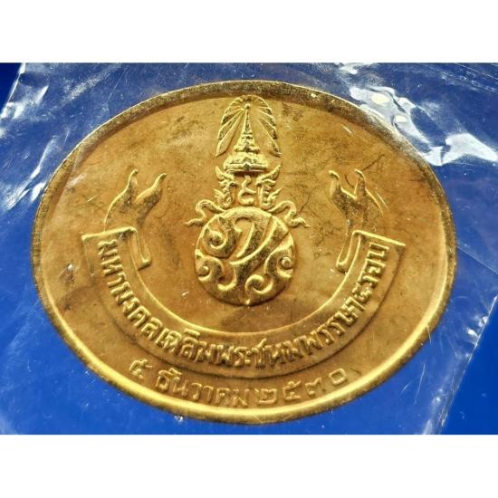 เหรียญพระนอน (พระพุทธไสยาสน์) วัดพระเชตุพนวิมลมังคลาราม (วัดโพธิ์) หลัง ภปร. ที่ระลึกเฉลิมพระชนมพรรษา 5 รอบ รัชกาลที่ 9 พ.ศ. 2530