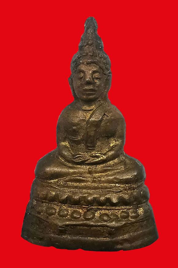 พระพุทธนิรโรคันตรายชัยวัฒน์จตุรทิศ พิมพ์หน้าใหญ่ เนื้อทองเหลือง ปี2511 จ.พัทลุง(ตอก3โค้ด) + บัตรG-pra สภาพเดิมค่ะ