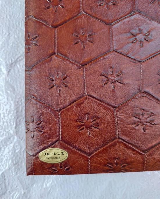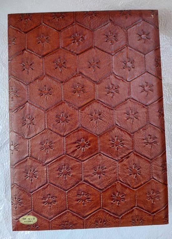 กล่องไม้หุ้มหนังแท้ตอกลายกระดองเต่าทรงกลม ขนาด 32*22 สูง 4.5 ซม.จาก Kanogiyaman-Vintage Japan Genuine Leather by Kanogiyaman หนังตอกลายสวยงาม
