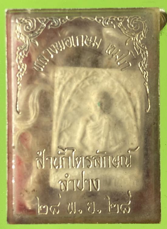 พระผงรูปเหมือนซุ้มกิ่งไผ่ หลวงพ่อเกษม เข้ามโก สำนักสุสานไตรลักษณ์ จังหวัดลำปาง สร้างปี 2528(มีสายสินในพิธีมาในกล่องด้วยคับ)