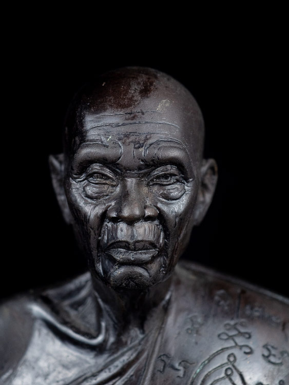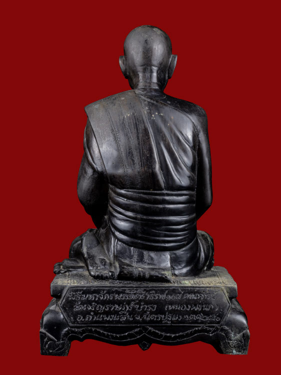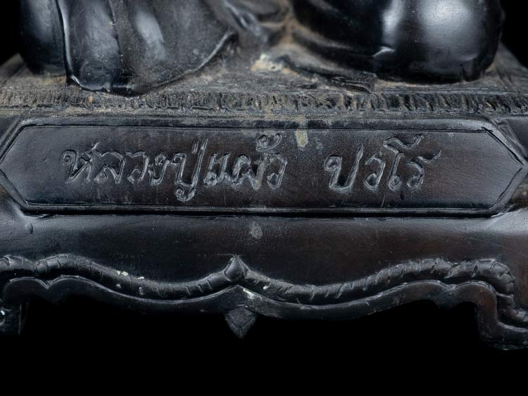 พระบูชารูปเหมือน หลวงปู่แผ้ว วัดเจริญราชบำรุง ( หนองพงนก ) จ .นครปฐม พ.ศ.2550 หน้าตัก 5.5 นิ้ว เนื้อโลหะรมดำผิวแห้งหิ้ง ! !