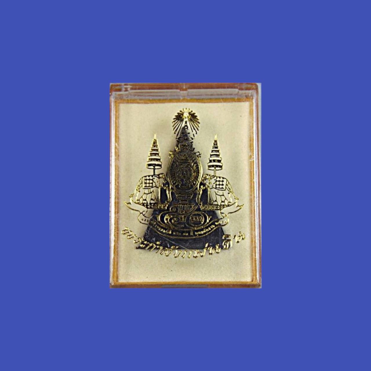 ๔).พระกำลังแผ่นดิน ขนาด ๓.๒ ซม.เนื้อผงใส่กรอบกะไหล่ทอง บริจาค ๓๐๐ บาท จำนวนการสร้าง ๑,๐๐๐,๐๐๐ องค์