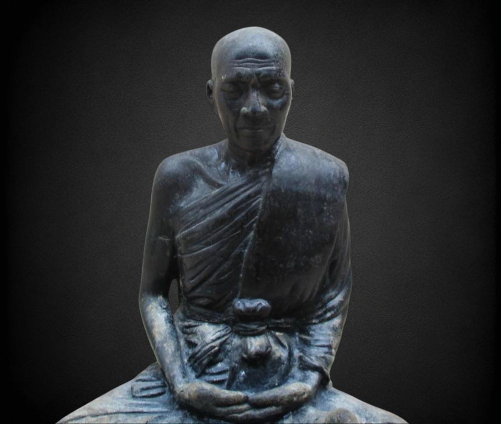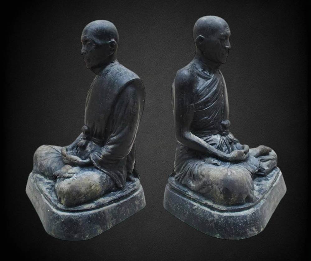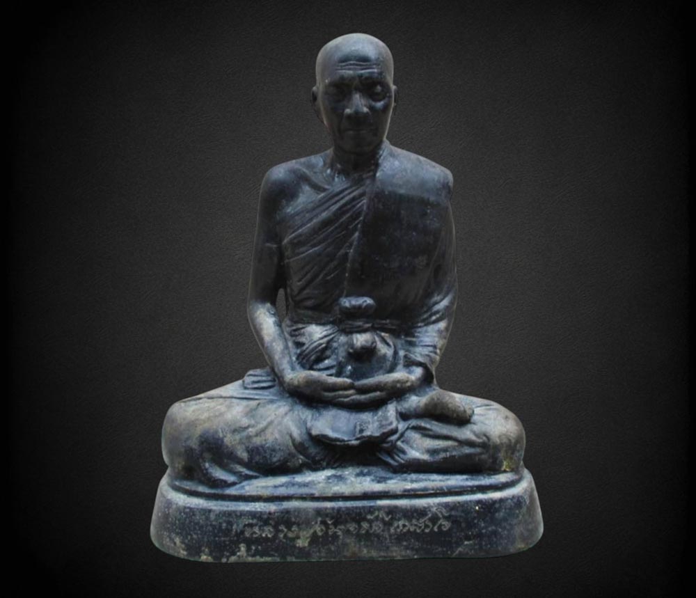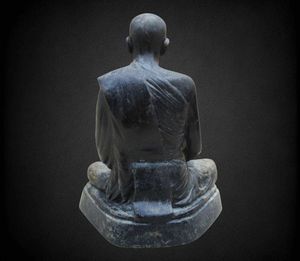 พระบูชาหลวงปู่จันทร์ดี เกสาโร วัดหินป่าเกิ้ง จ.ขอนแก่น รุ่นแ รก พ.ศ.2517 หน้าตัก 5 นิ้ว เนื้อโลหะรมดำมันปู ผิวแห้งหิ้ง ! !