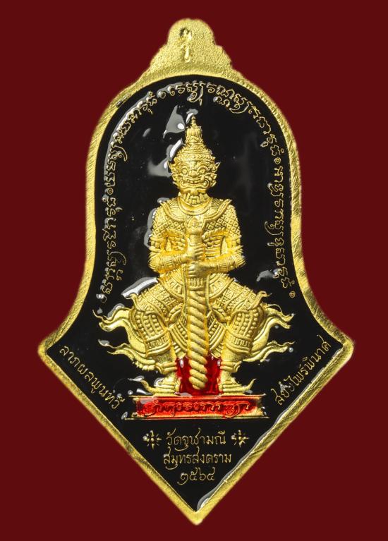เหรียญหลวงพ่อโสธร หลังท้าวเวสสุวรรณ รุ่นสยบไพรีพินาศ หลวงพ่ออิฎฐ์ วัดจุฬามณี จำปี (พิมพ์ใหญ่) เนื้อมหาชนวนกาหลั่ยทอง ลงยาดำ แดง120
