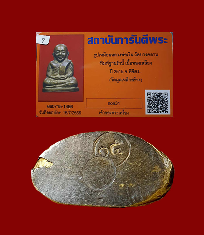 สวยแชมป์ครับ/// หลวงพ่อเงินวัดมูลเหล็ก ฐานกว้าง ปี 15 เนื้อทองเหลือง +บัตร**1486**