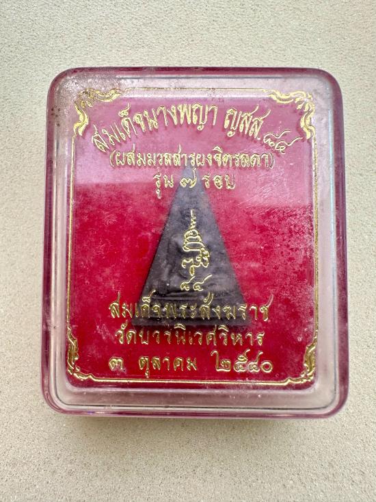 สมเด็จนางพญา ญสส. 84 สมเด็จพระญาณสังวร เนื้อผงผสมมวลสารจิตรลดา ที่ระลึก 7 รอบ มาพร้อมกล่องเดิม สร้างปี 2540 |