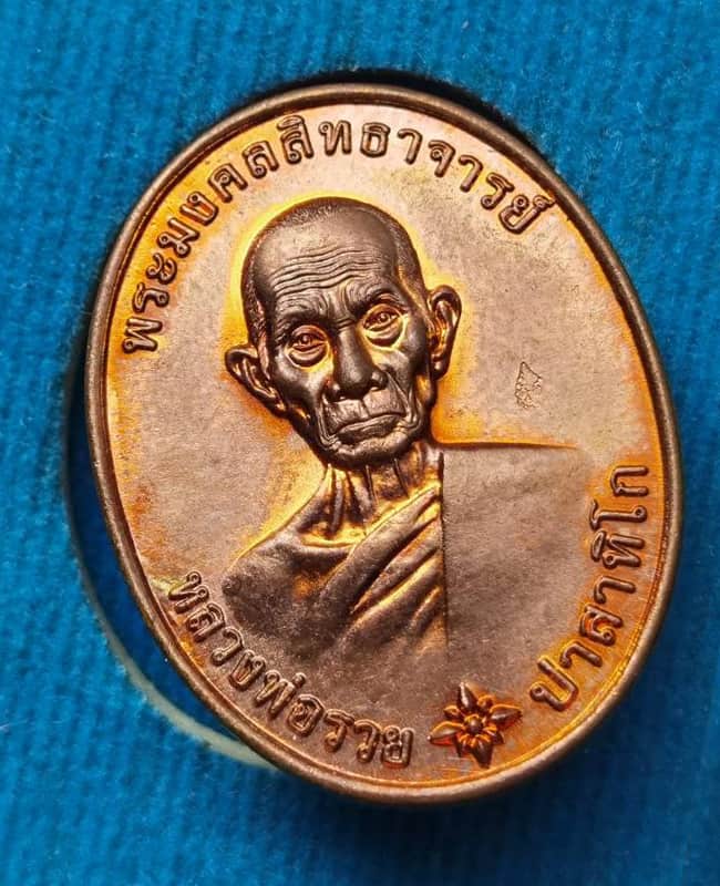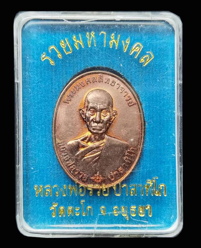 เหรียญหลวงพ่อรวย ปาสาทิโก วัดตะโก เนื้อทองแดง ปี 2559 กล่องเดิม |