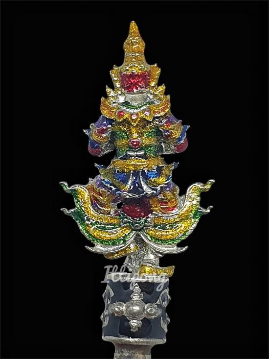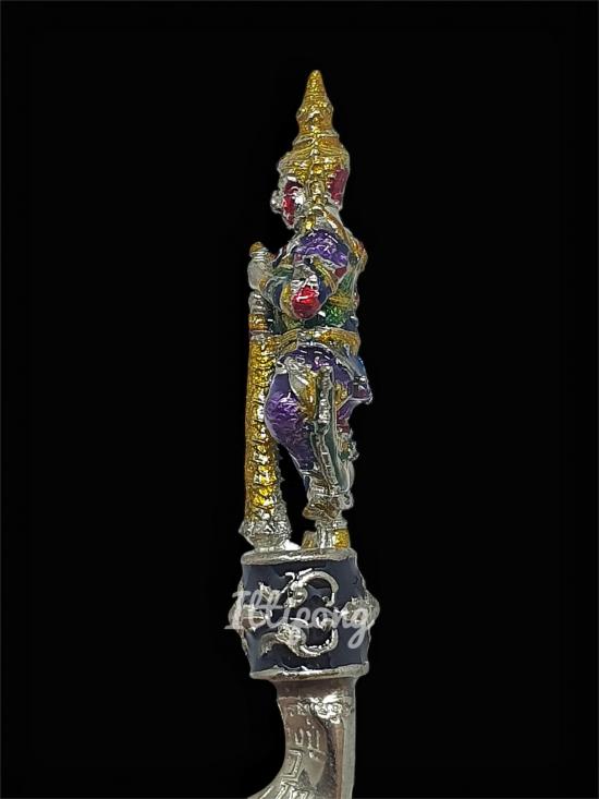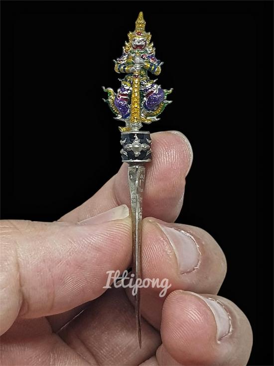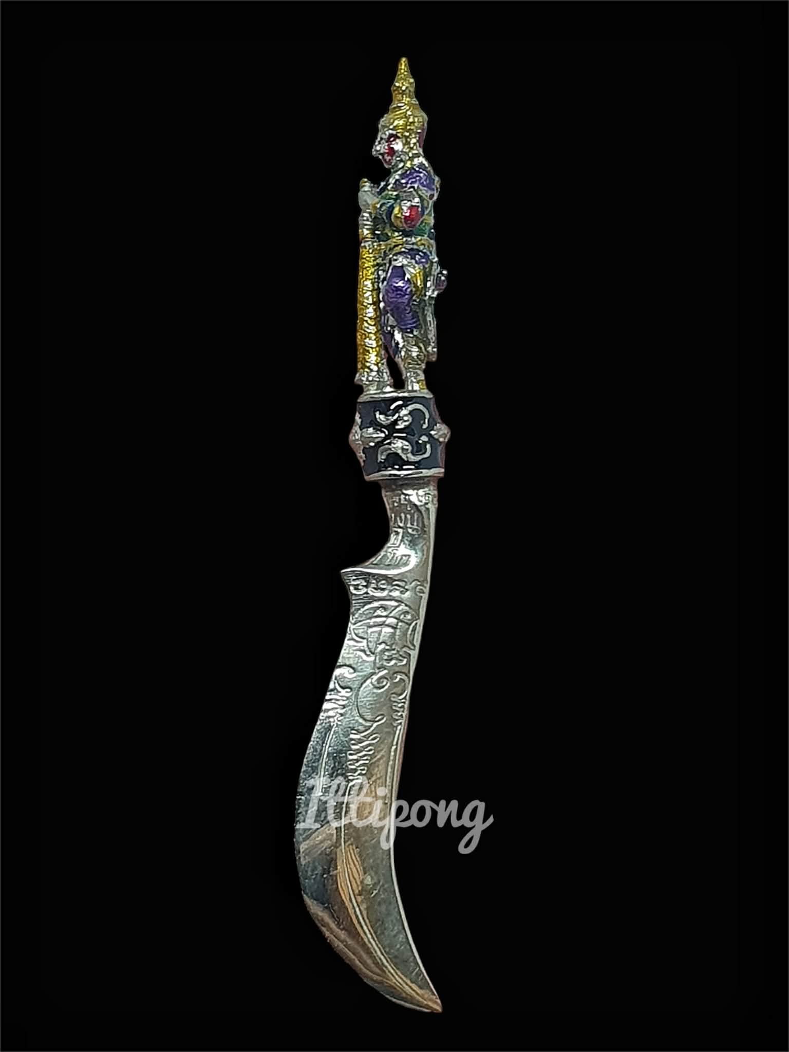 มีดหมอท้าวเวสสุวรรณมหาปราบ รุ่นพินัยกรรมเศรษฐี หลวงปู่สอ วัดโพธิ์ศรี จ.นครพนม มีกล่องครบ เนื้อทองขาวลงยาราชาวดี ขนาดยาว 3 นิ้ว |