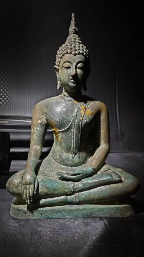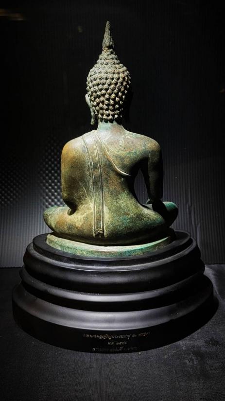 พระบูชาสุโขทัย เนื้อสำริดสนิมเขียว หน้าตัก " ตรา สธ.(สิรินธร) สร้าง 1,000 องค์ พระพุทธรูปสุโขทัย สธ. หล่อด้วยเนื้อสัมฤทธิ์ สนิมเขียว เสด็จพระราชดำเนินประกอบพระราชพิธีพุทธาภิเษกโดยสมเด็จเจ้าฟ้ามหาจักรีสิรินธร ตราที่หน้าผ้าทิพย์ สธ.(สิรินธร) จัดสร้างขึ้นเนื่องในวโรกาส สมเด็จพระเทพรัตนราชสุดาสยามบรมราชกุมารีเจริญพระชนมายุครบ 50 พรรษา มีพิธีพุทธาภิเษกวันที่ 11-12 พฤศจิกายน 2548 ณ.บริเวณวัด ศรีพิจิตรกิรติกัลยาราม กรุงเก่าสุโขทัย ซึ่งเป็นพิธีใหญ่โตมาก องค์พระหล่อ 2 ถอด แล้วนำมาเข้าองค์รวมกัน คือ องค์หล่อด้วยสำริดสนิมเขียว ที่ฐาน เป็นเนื้อ ไม้อัดเคลือบสีดำ