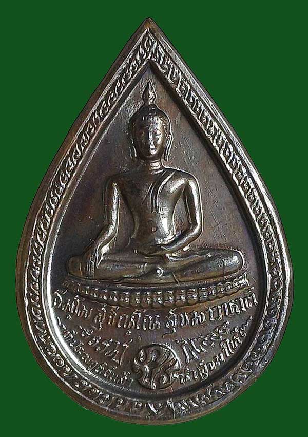 เหรียญหยดน้ำหลังพระพุทธเนื้อนวะโลหะ ปี 2525 หลวงปู่แหวน สุจิณฺโณ วัดดอยแม่ปั๋ง อ.พร้าว จ.เชียงใหม่ สมโภชน์ครบ 200 กรุงรัตนโกสินทร์ จัดสร้างโดยกรมธนารักษ์