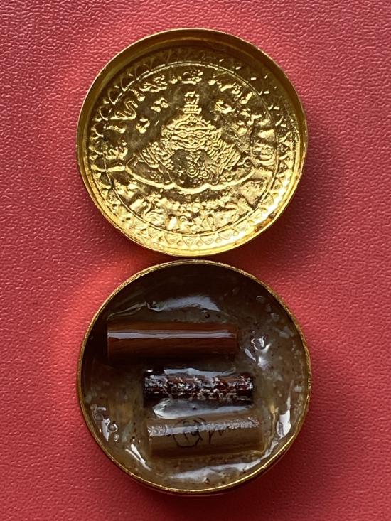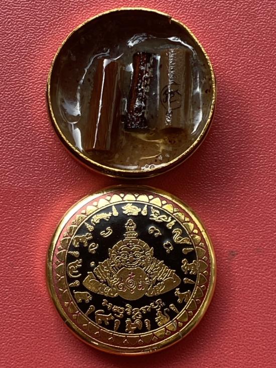 เคาะเดียวแดง สีผึ้งพระราหู รุ่น มงคลจักรวาล เนื้อ โลหะชุบทองลงยาสีดำขอบสีแดง ขนาด3.2ซม |