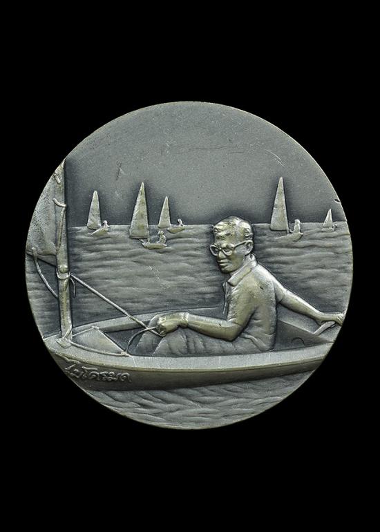 เหรียญในหลวง ร.9 ทรงเรือใบ ไมโครมด "เนื้อเงินรมดำ" ที่ระลึกกีฬาเอเชี่ยนเกมส์ ครั้งที่ 13 ปี 2541 พร้อมกล่อง