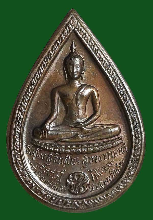 เหรียญหยดน้ำหลังพระพุทธเนื้อนวะโลหะ ปี 2525 หลวงปู่แหวน สุจิณฺโณ วัดดอยแม่ปั๋ง อ.พร้าว จ.เชียงใหม่ สมโภชน์ครบ 200 กรุงรัตนโกสินทร์ จัดสร้างโดยกรมธนารักษ์