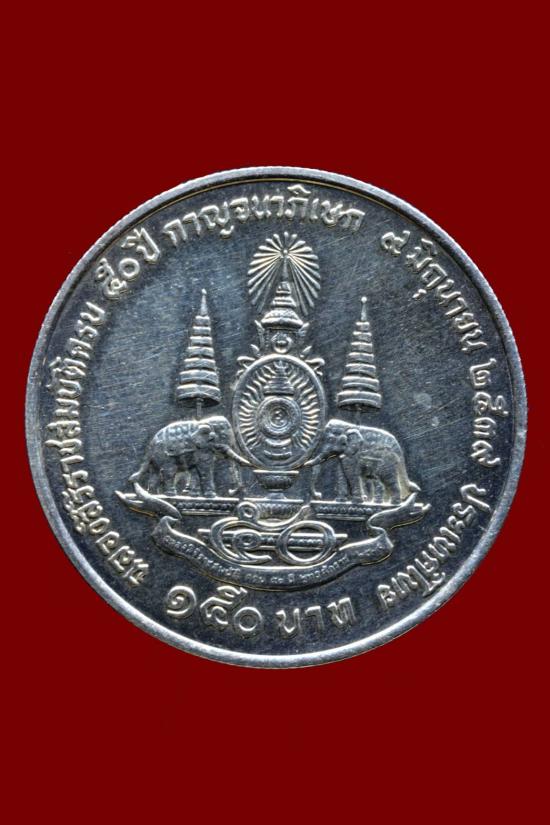 วัดใจ 490.เหรียญเงิน 150 บาท ที่ระลึก 50 ปี กาญจนาภิเษก ปี2539