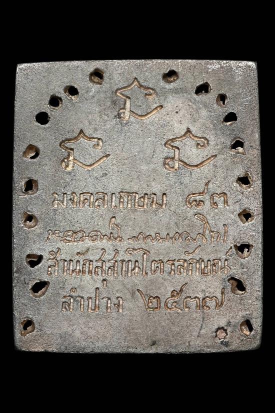 เหรียญรูปเหมือนสี่เหลี่ยมลายฉลุ หลวงพ่อเกษม เขมโก รุ่นมงคลเกษม 83 เนื้อเงิน ปี2537 จ.ลำปาง *นน.เงิน 14.13 กรัม*