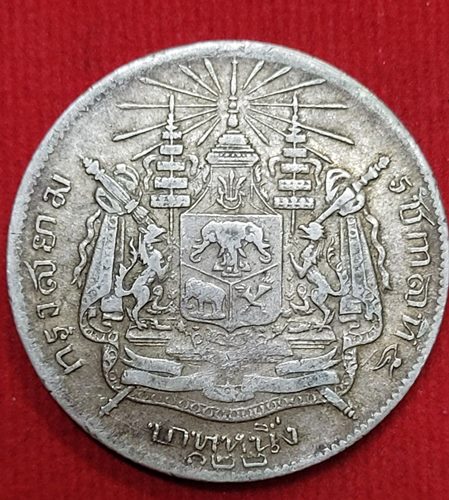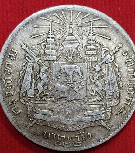 เหรียญบาทหนึ่ง รัชกาลที่ 5 หลังตราแผ่นดิน ร.ศ.๑๒๒ สภาพดี หายาก # 2
