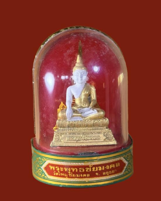 พระบูชาตั้งหน้ารถ พระพุทธชัยมงคล วัดใหญ่ชัยมงคล พระนครศรีอยุธยา เนื้อโลหะ