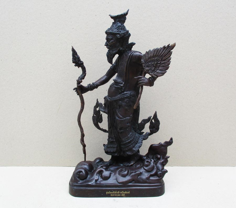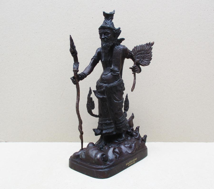 พระฤาษีเดินดงทรงฤทธิ์ รุ่นโชคดี มั่งมี ทวีทรัพย์ พระอาจารย์วิรุต ญาณสํวโร วัดสันมะเหม้า อ.พาน จ.เชียงราย พ.ศ.2559 เนื้อโลหะรมมดำ สูงรวม 15 นิ้ว ถอดได้ 3 ถอด !!