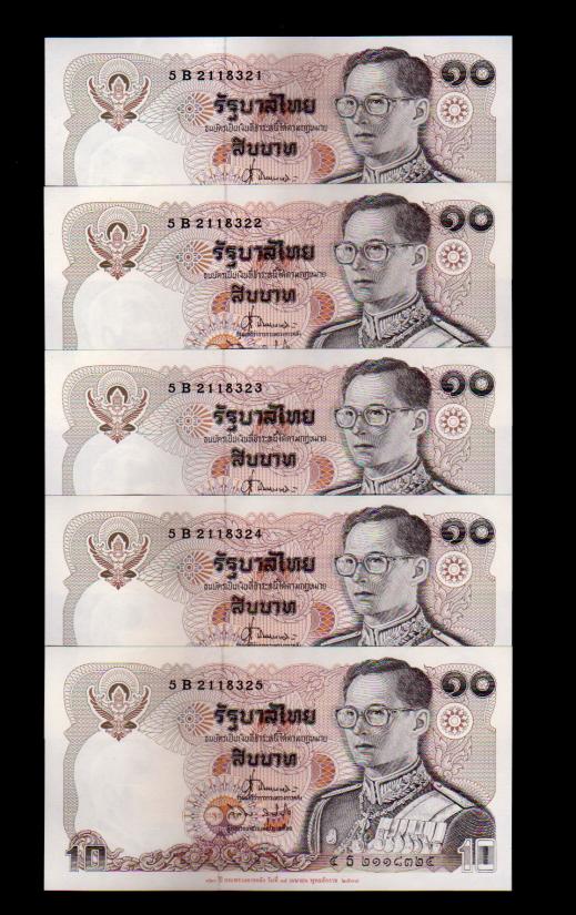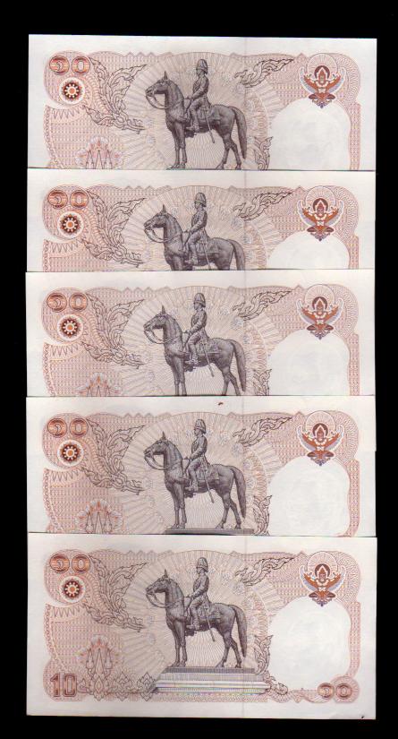 ## ธนบัตร 10 บาท ## ทรงม้า ## 120ปี กระทรวง ## เรียงเลข 5 ฉบับ ## แกะแหนบ ## UNC ##