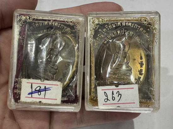 เหรียญไพรีพินาศ ฝังตะกรุดท้องแขน เนื้อชนวน มีกล่องครบ จำนวน 2 เหรียญ |