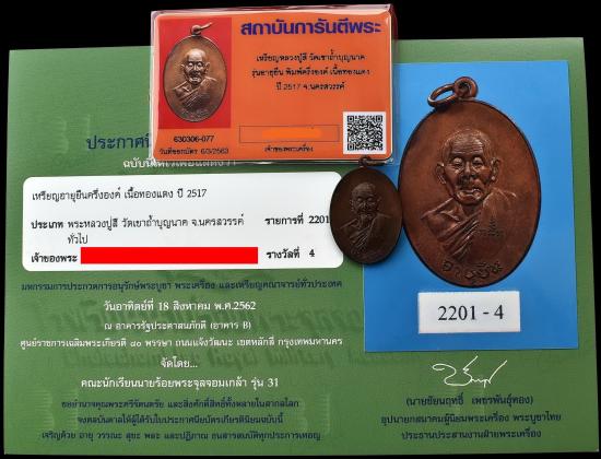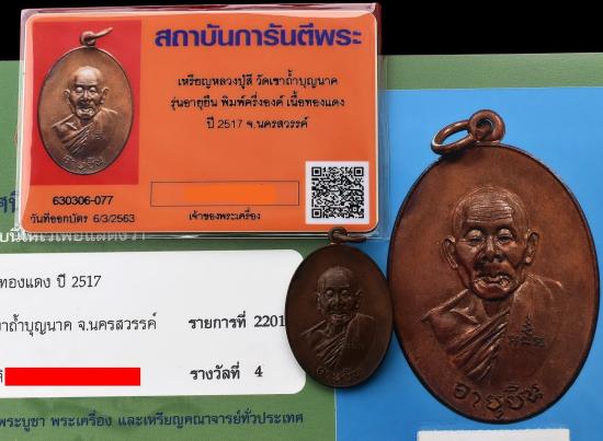 *** เคาะเดียวแดง ทุกรายการ *** เหรียญอายุยืน พิมพ์ครึ่งองค์ เนื้อทองแดง หลวงปู่สี วัดเขาถ้ำบุญนาค นครสวรรค์ ปี 2517 มีบัตรการันตีพระ + ติดรางวัลที่ 4 งานประกวดพระ สภาพตามรูป