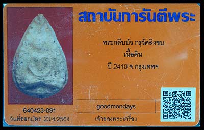 พระกรุเนื้อดิน พิมพ์กลีบบัว ปี2410 วัดลิงขบ กรุงเทพ ลพ.โต.ลป.รอด ร่วมปลุกเสก
