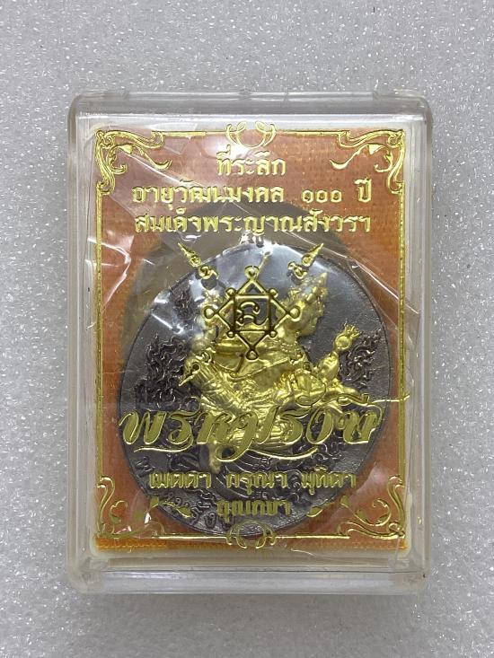 เหรียญหล่อท้าวมหาพรหม รุ่น"พรหมรังษี" ที่ระลึกอายุวัฒนมงคล ๑๐๐ ปี สมเด็จพระญาณสังวร ฯ วัดบวรนิเวศ เนื้อนวะแก่ทองคำ หน้ากากทองชนวน กล่องเดิม |