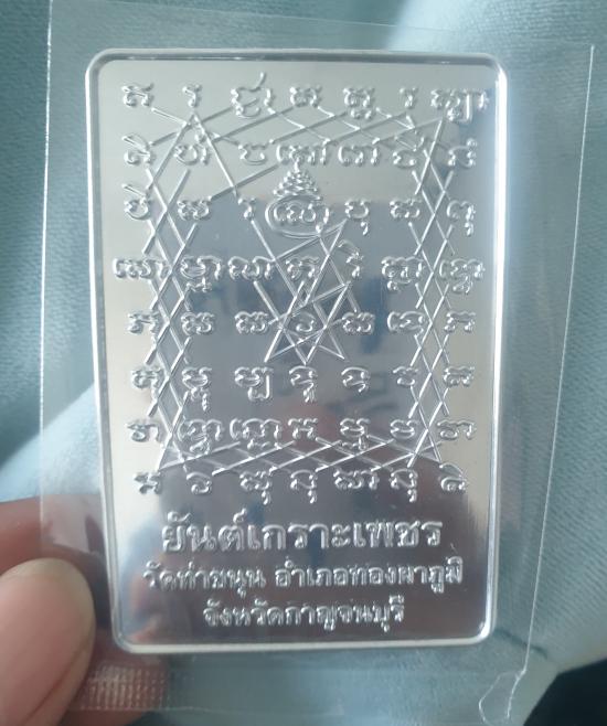 กระผม/อาตมภาพทำแผ่นยันต์เนื้อโลหะ ก็เพื่อท่านทั้งหลายที่ต้องการตะกรุดยันต์เกราะเพชร สามารถนำไปม้วนใช้งานได้เอง แล้วขณะเดียวกัน ถ้าต้องการชนวนในการหล่อพระ หรือว่าสร้างวัตถุมงคลก็สามารถที่จะบูชาไปเก็บเอาไว้ ต่อให้กระผม/อาตมภาพล่วงลับดับขันธ์ไปเป็น ๑๐ ปี ถ้าท่านมีแผ่นยันต์อยู่ ก็สามารถที่จะใช้เป็นชนวนในการสร้างวัตถุมงคลหรือว่าหล่อพระได้