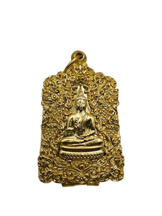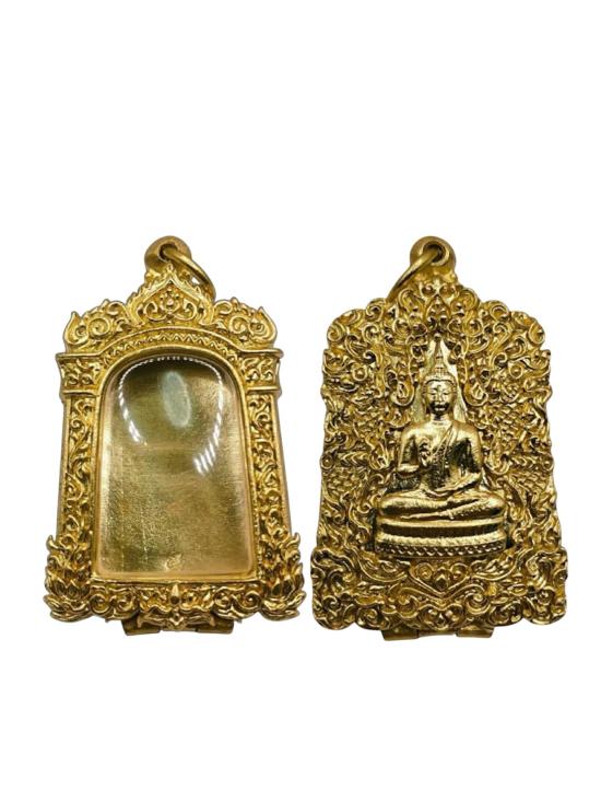 ตลับพระ สมเด็จเนื้อทองเหลืองแท้ หลังปิดลายพระพุทธรูป นูนต่ำ งานดิบ ไม่ชุบ |