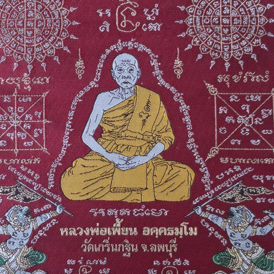 ชื่อพระเครื่อง ผ้ายันต์หนุมานเชิญธง (ดิ้นทอง) ปี 2547 หลวงพ่อเพี้ยน วัดเกริ่นกฐิน จ.ลพบุรี สวๆซองเดิมๆครับ