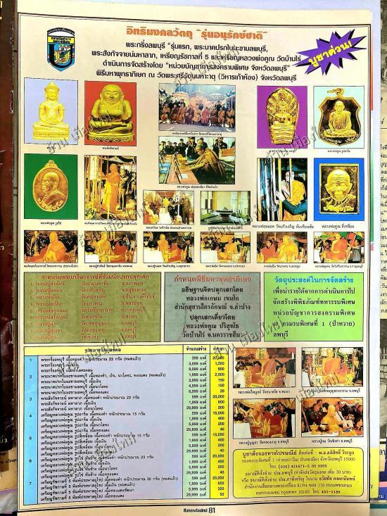 -ผู้จัดสร้าง : หน่วยบัญชาการสงครามพิเศษ จ.ลพบุรี , พลโท ฉลองชัย แย้มสะโส ผู้บัญชาการหน่วยบัญชาการสงครามพิเศษ ขออนุญาตจัดสร้างวัตถุมงคล