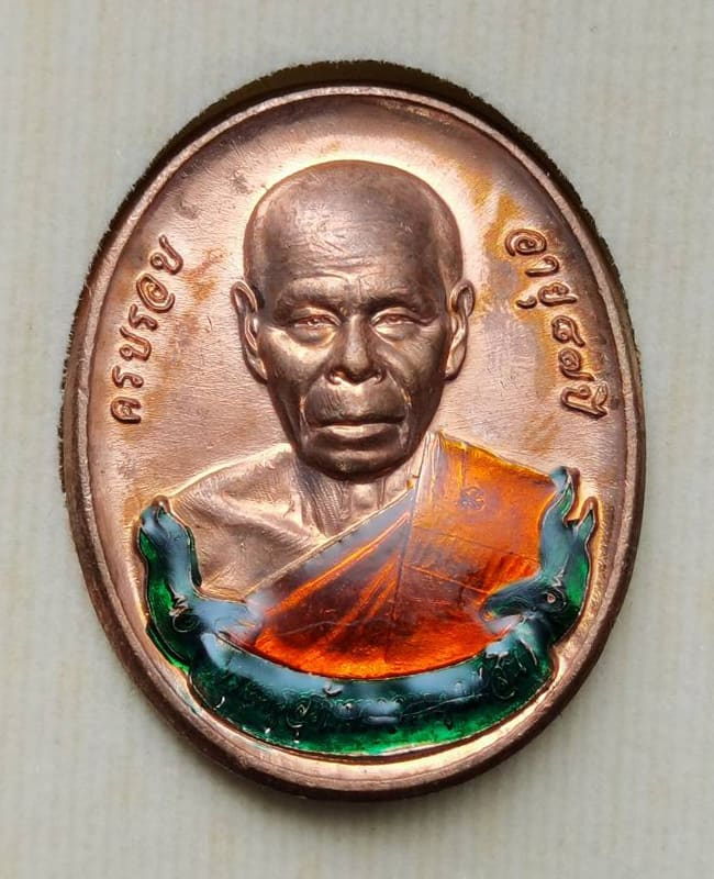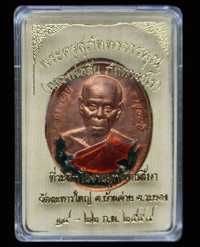 เหรียญหลวงพ่อสิน ที่ระลึกผูกพัทธสีมา เนื้อทองแดงลงยาจีวร ปี2558 |