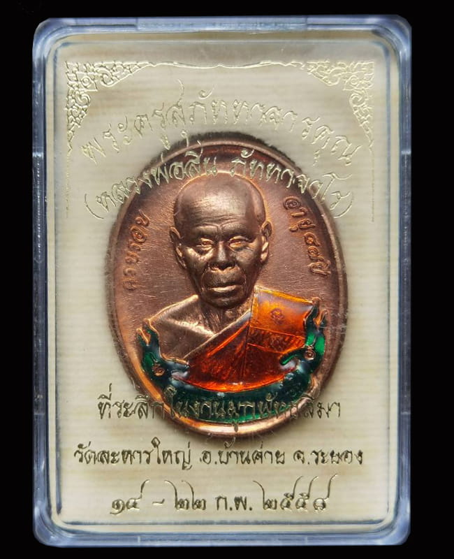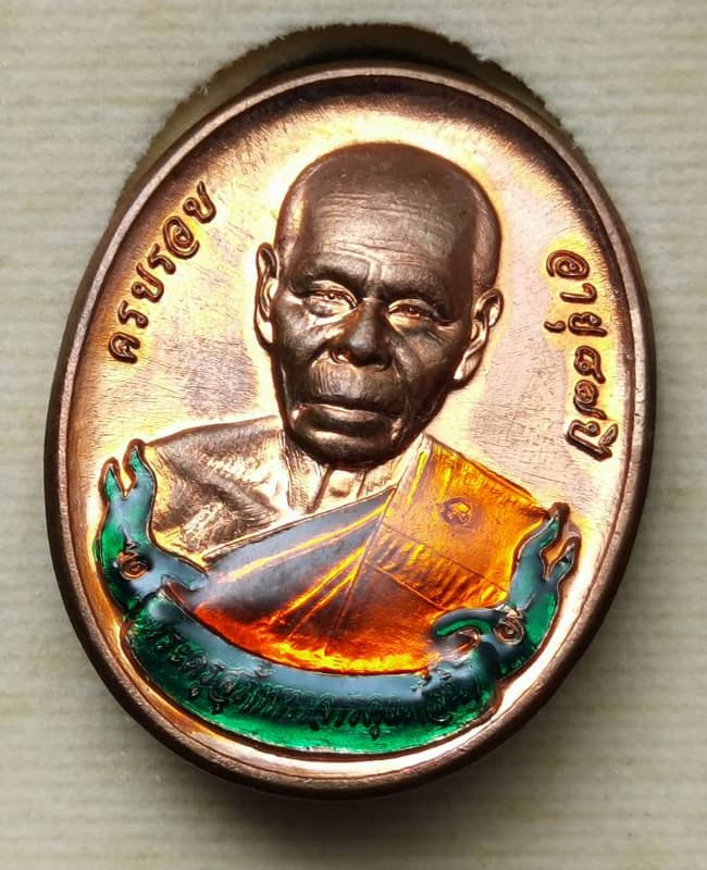 เหรียญหลวงพ่อสิน ที่ระลึกผูกพัทธสีมา เนื้อทองแดงลงยาจีวร ปี2558 |