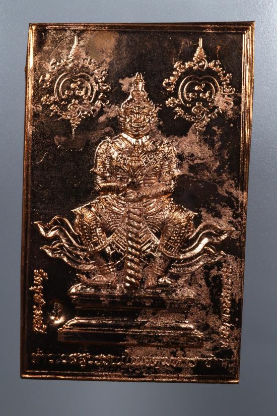 *แผ่นปั้มท้าวเวสสุวรรณ พระอาจารย์อิฏฐ์ วัดจุฬามณี จ.สุมทรสงคราม ปี 2554 เนื้อทองแดง ตอกโค้ด ขนาด 5 x 8 ซม.