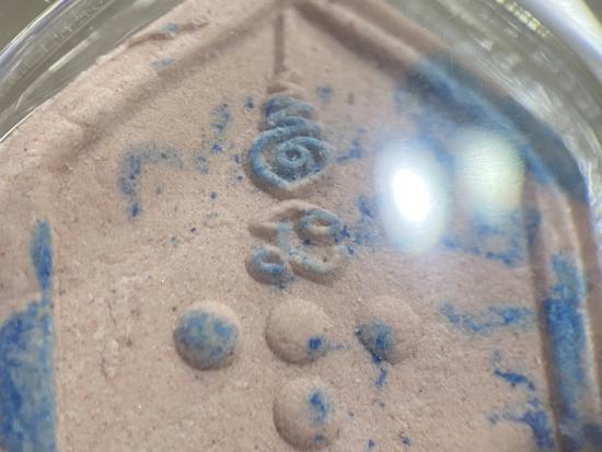 เนื้อผงพุทธคุณสีชมพู (หลังปั๊มตราวัด) แท้ทันหลวงพ่อ