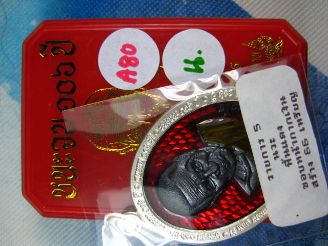 ### เนื้อนวะโลหะ ### เหรียญชนะจน 106 ปี เนื้อนวะโลหะ ลงยาพื้นสีแดง ขอบหน้ากากเงิน สร้าง 66 เหรียญ (---A80---)