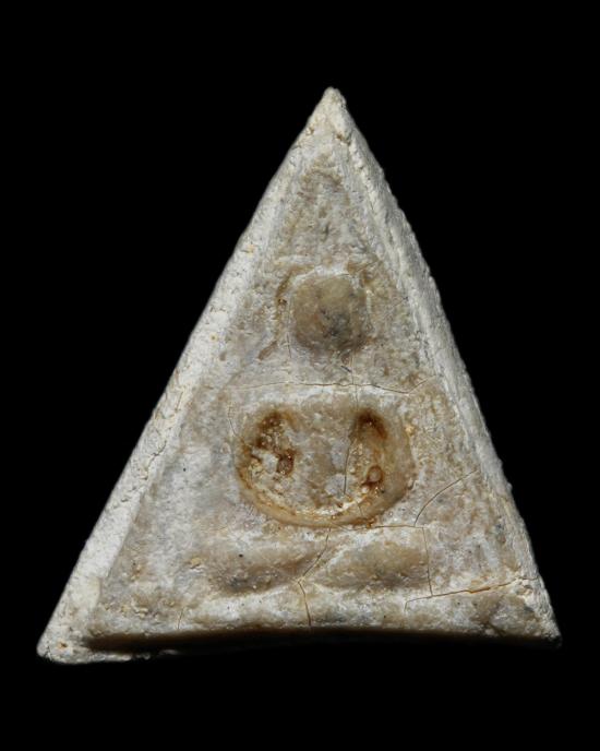 พระพุทธฐานบัว พิมพ์สามเหลี่ยม วัดอรุณฯ (วัดแจ้ง) กทม. พ.ศ. 2509 พิมพ์เล็ก หลังตราโล่ห์ตำรวจ(ตราแผ่นดิน) ลพ.คล้าย, ลป.นาค,ลพ.เงิน,ลพ.เต๋,ลพ.เนื่องฯลฯ เสก