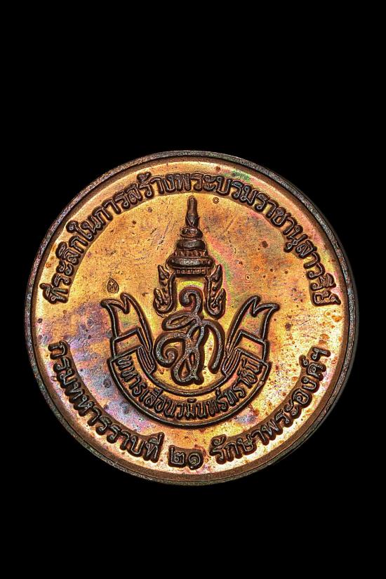 เหรียญสมเด็จพระนเรศวรมหาราช ที่ระลึกในงานสร้างอนุสาวรีย์ รุ่นทหารเสือนวมินทราชินี กรมทหารราบที่21รักษาพระองค์(ชลบุรี) จัดสร้างเดือนสิงหาคม 2550 เนื้อนวะ จัดพิธียิ่งใหญ่ แดง 100 |